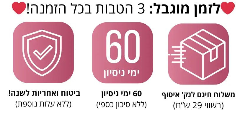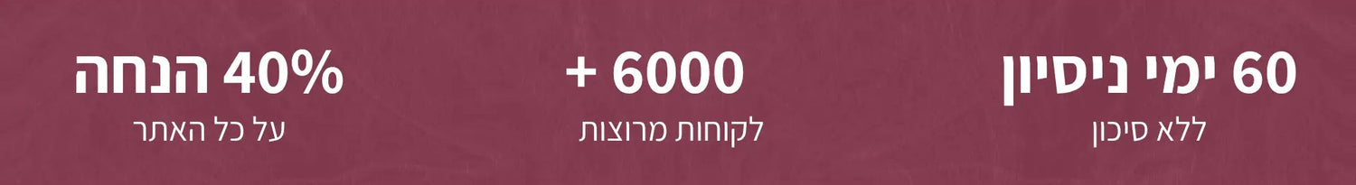 יש לך 60 ימי ניסיון מלאים בחינם + משלוח חינם עלינו.