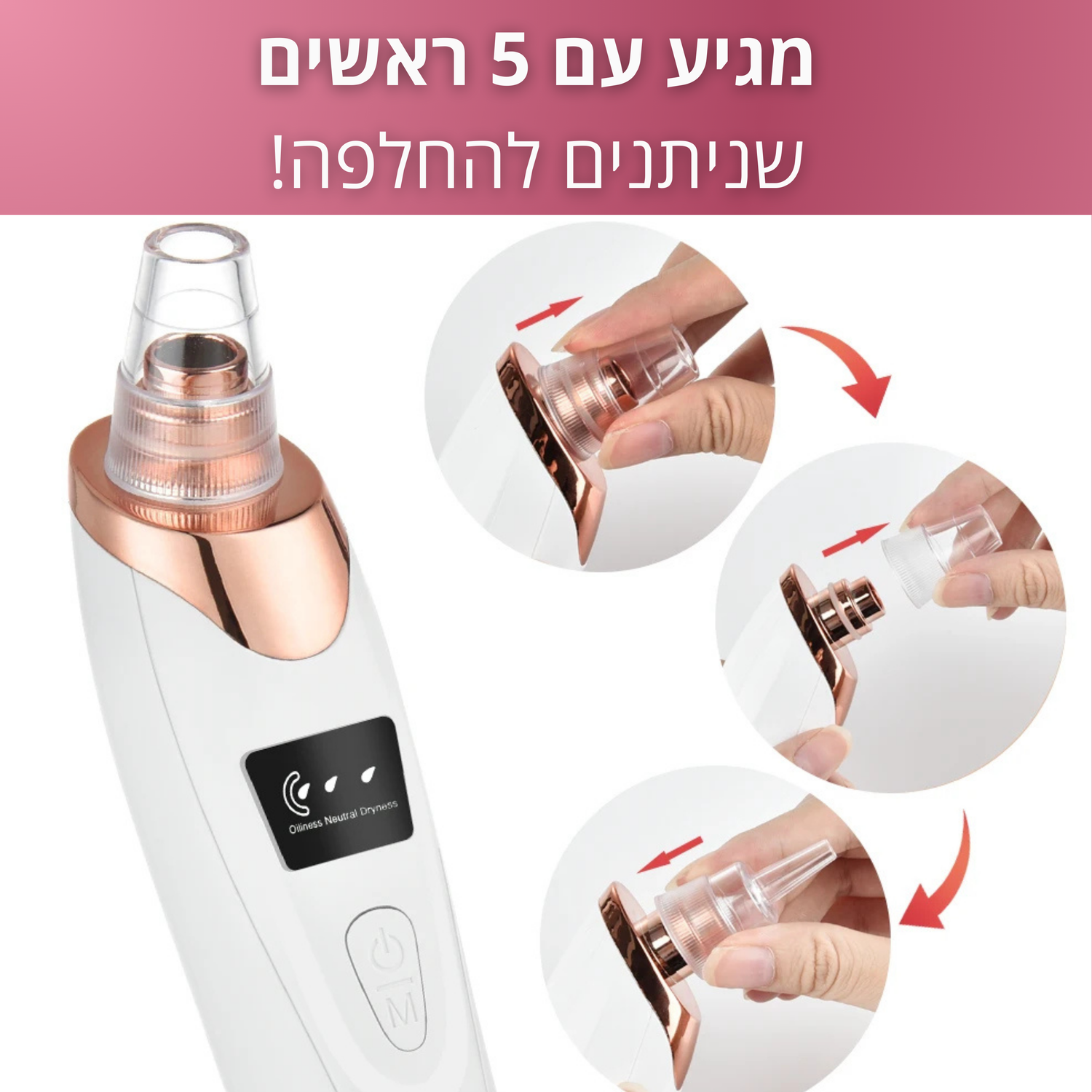 המכשיר שלנו משתמש בטכנולוגיית יניקה חכמה שמסירה את השחורים מהשורש מבלי לפגוע בעור.